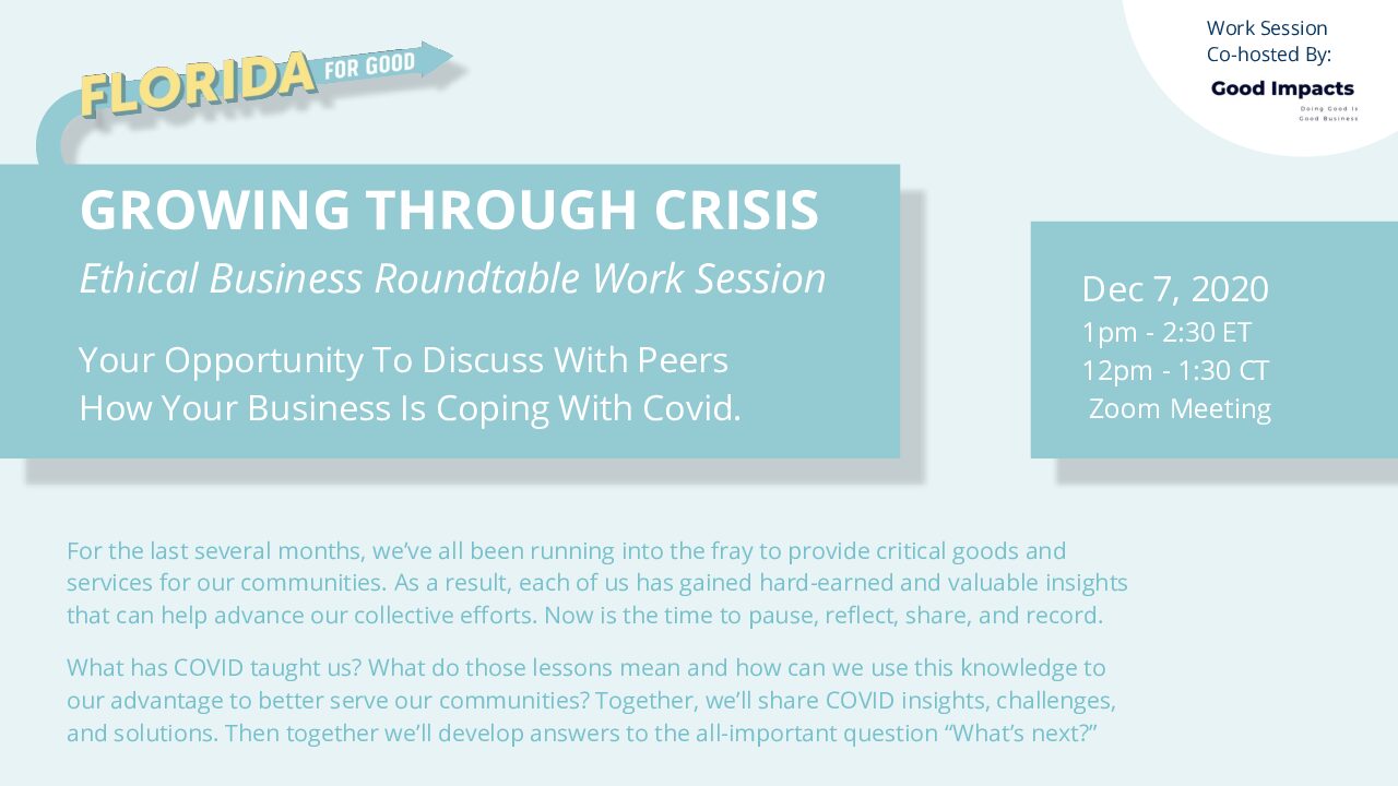 Florida ethical business roundtable work session. Your opportunity to discuss with peers how your business is coping with COVID. For the last several months, we’ve all been running into the...